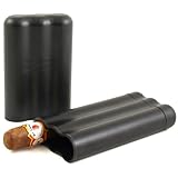 This ingenious black cigar case telescopes to fit 3 cigars up to 8 inches long and 50 ring. It is made with crush-proof ABS plastic and has a built-in humidification device to maintain your cigars in excellent smoking condition. Cigars not included.